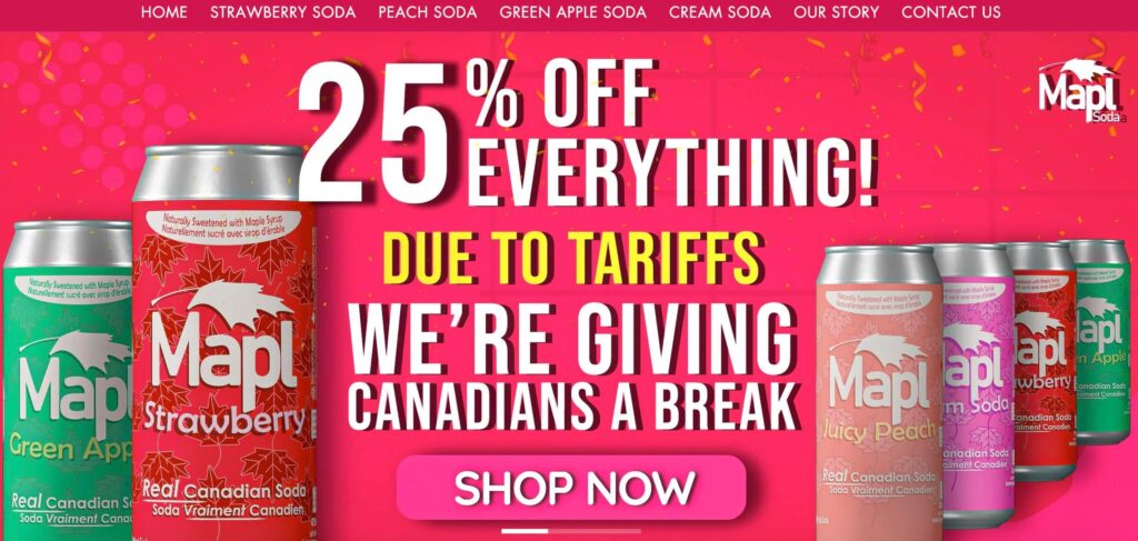 Consumers in the countries affected by U.S. tariffs, like Canada, are focusing on supporting the local economy. Hence brands are emphasizing their Canadian origins like the homepage announcement on the site here.
