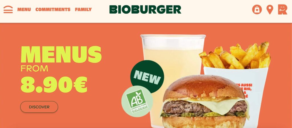 We have another brand that proves that organic food branding can be delectable and vibrant and not mundane. Bioburger is a French fast-food brand known for its organic burgers. Hence the whole identity is built around burgers. Notice those little burger details in the B’s in the logo? These B’s with the burger icon created in the negative space appear as a lettermark logo or as a part of the brand name wordmark in different scenarios. This demonstrates the adaptability of simple logo designs.