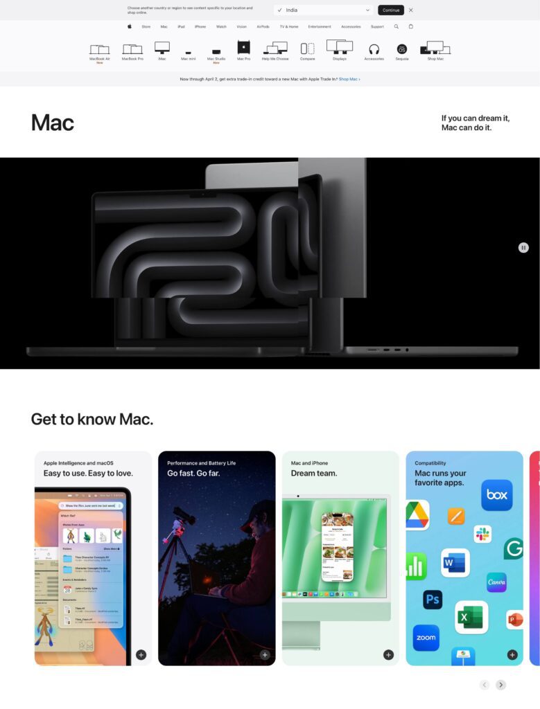 For example, on the Apple website, the below page is all about “Mac”. Therefore, it caters to a specific niche of audience – people who are planning to buy a Mac or those who own a Mac and are looking for support or additional details.