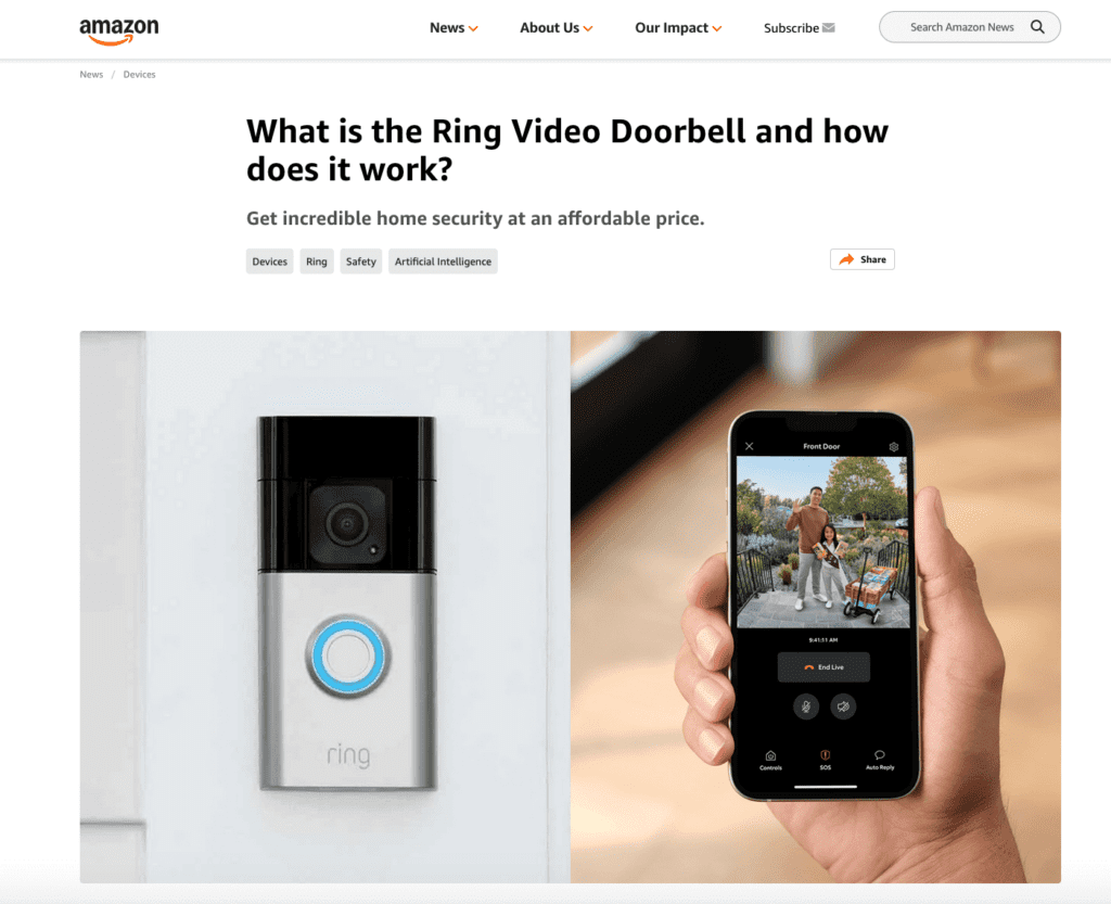 These could be in the form of an overview post or comprehensive coverage or even something product-specific. For example, the below post from Amazon is an introductory informational post that educates consumers about what a Ring Doorbell is and how it works. So anyone who was recently piqued by the concept of video doorbells or even someone who is just trying to understand if this is the kind of product they might eventually purchase will find this article to be handy.