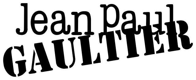 The whole style relies on a unique combination of a typewriter-style typeface and a stencil-type typeface. There’s a hint of elegance elevating the modernity of the design. Notably, the word “Gaultier” is prominently displayed in bold, all-caps lettering, slanted diagonally across the first part of the name. This juxtaposition creates a dynamic visual that draws attention and conveys confidence.