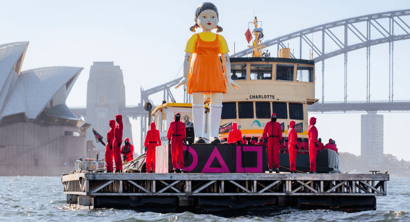 Moreover, to promote the Squid Game Experience in Sydney, Netflix also introduced a ferry carrying 300 guards and the Young-hee doll at Luna Park. This created a significant buzz.