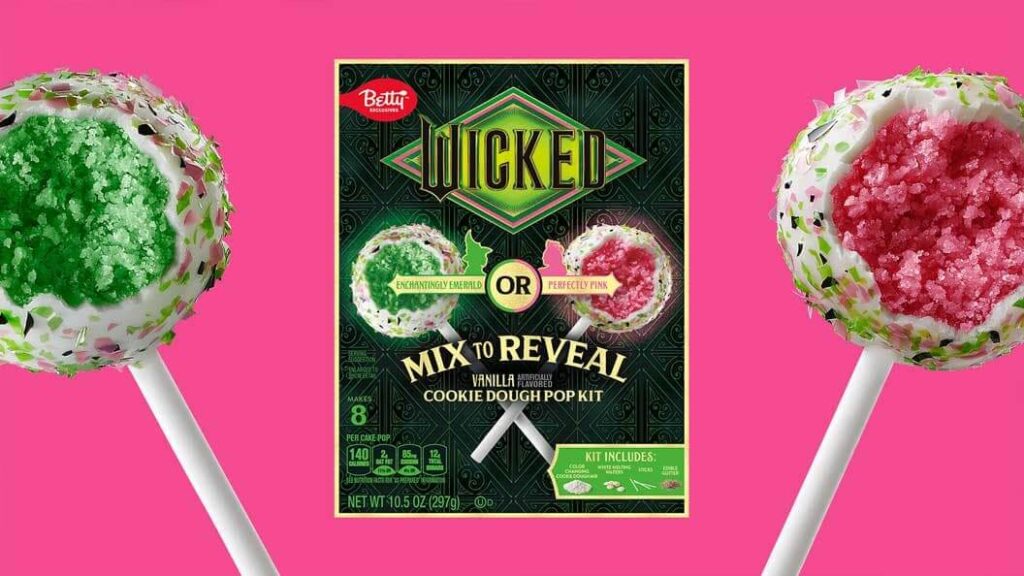 As a part of their partnership with Wicked, Betty Crocker revealed their enchanting new baking collection. The Betty Crocker Wicked Mix to Reveal Kits are designed to allow customers to create treats with a twist. These include cupcakes and cookie dough pops that reveal either Glinda’s signature pink or Elphaba’s emerald green colors.