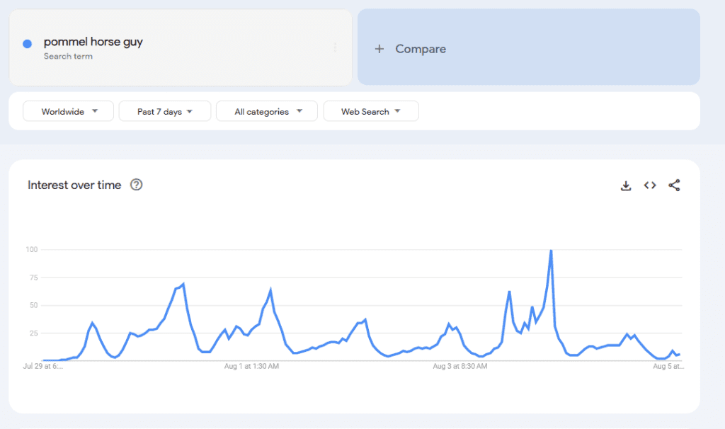 The below graph from Google Trends shows how searches related to the “Pommel Horse Guy” reached a breakout in a short time.