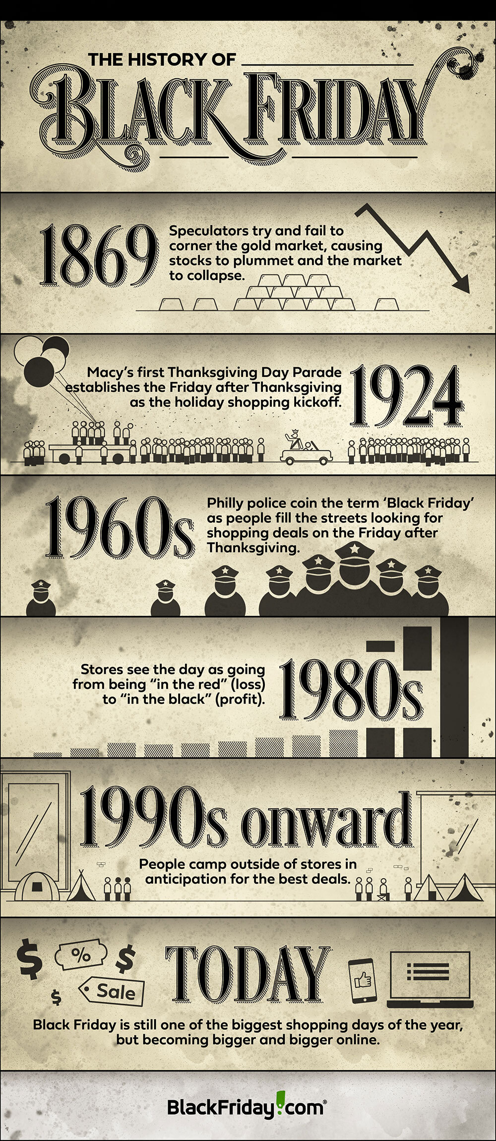 Today Black Friday is all about deals, and shopping. But did you know that when it all began, there was no connection between the term Black Friday and shopping? Back in 1869, Black Friday was the day when the securities market crashed. It was nicknamed the “gold panic of 1869”