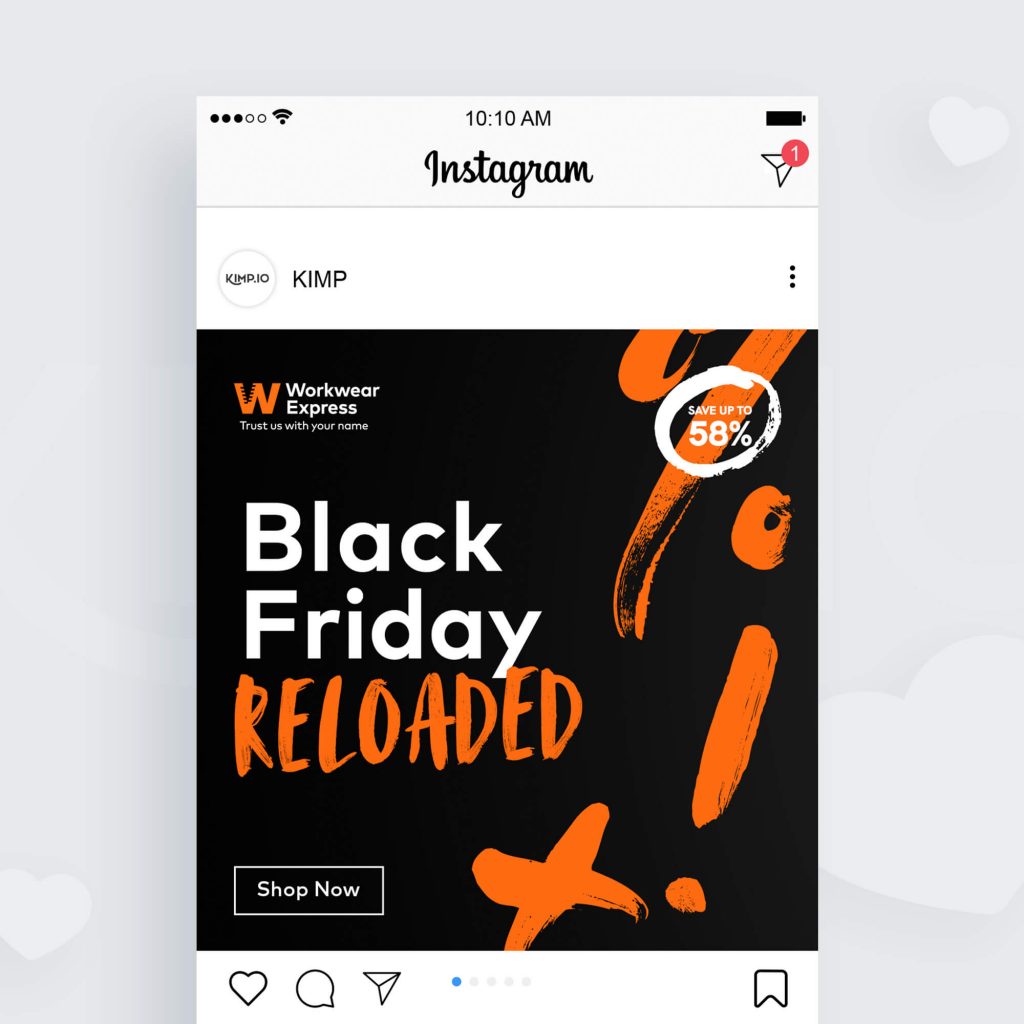 KIMP Tip: During times like Black Friday, it’s all about creating something unique to grab your customers’ attention. You do not want cliched layouts and stock images in your posts. Use actual product images. Even if you have to use stock elements, add your brand’s touch to come up with a catchy Black Friday post that grabs eyeballs.