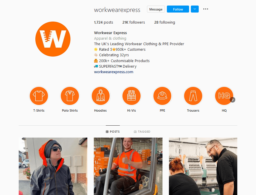 The above image shows a social media design for the Black Friday campaign of Workwear Express. And here is what the brand’s Instagram page looks like.