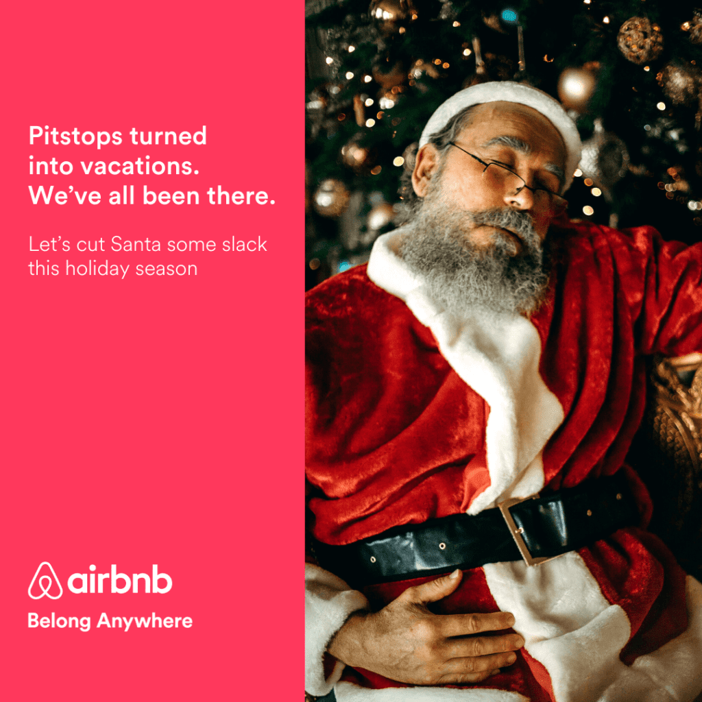 For example, consider the ad designs from Airbnb. People looking to book their accommodation when traveling are looking for a safe and comfortable space where they feel like they belong. And Airbnb’s objective is to cater to such an audience. Therefore, their ads are mostly built on strong emotional values and relatable messages. From the visual cues to the copy, everything about their designs aligns with these.