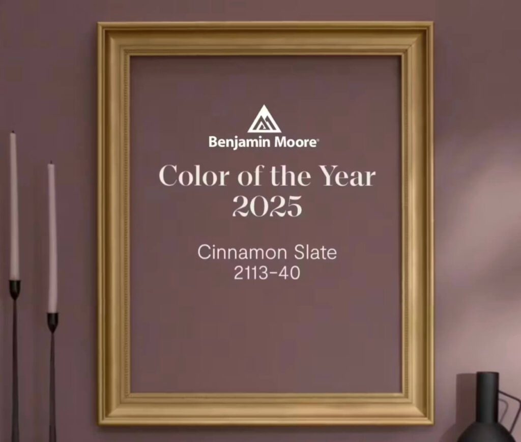 Then there’s Benjamin Moore’s Color of the Year 2025, Cinnamon Slate (2113-40). As the brand describes the color is a blend of “heathered plum and velvety brown”.