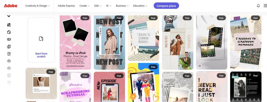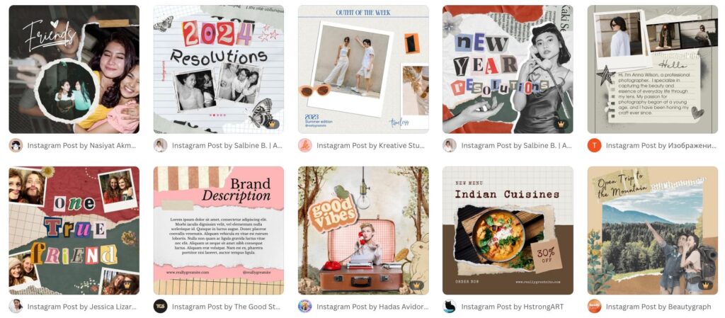 Besides, tools like Canva and Adobe make it easy to instantly create scrapbook-style designs or even inspire you with layouts. Here are some templates on the Canva and Adobe Express libraries respectively.