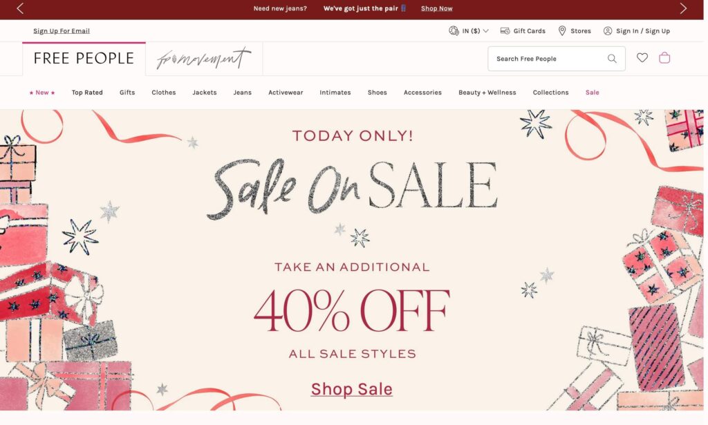 For example, the fashion brand Free People is known for its unique Boho style fashion. The use of hand-drawn illustrations on their website adds a casual tone complementing their personality.