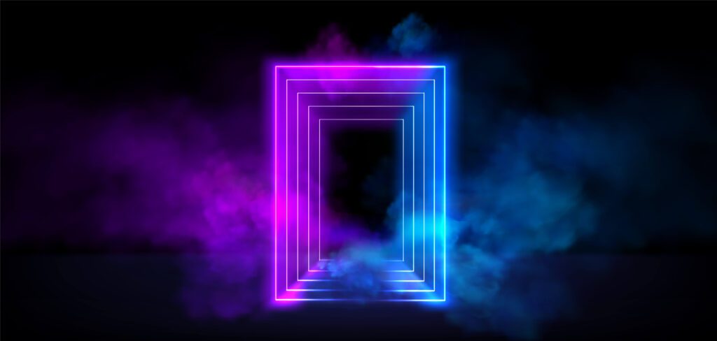 Several ‘graphic design trends 2025’ lists also predict that neon on dark trend will be one to look out for. This aligns well with the dark mode trend and seamlessly brings in other design trends like the use of neon gradients for maximum impact. Moreover, this combines old and new with the charm of vintage neon lights against a chic black background.