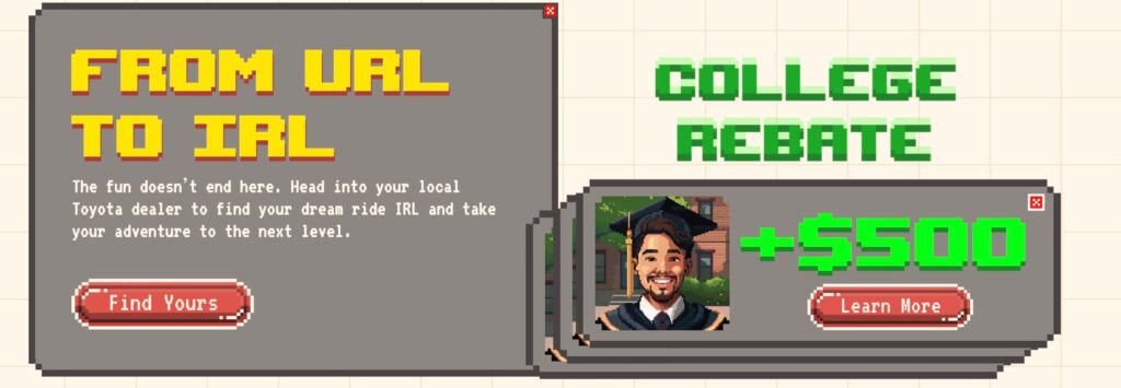 Following this trend, Toyota also announced their creative engagement campaign, Toyota Test Track Cruise CTRL, an interactive video game that effortlessly directs consumers through the purchase funnel.