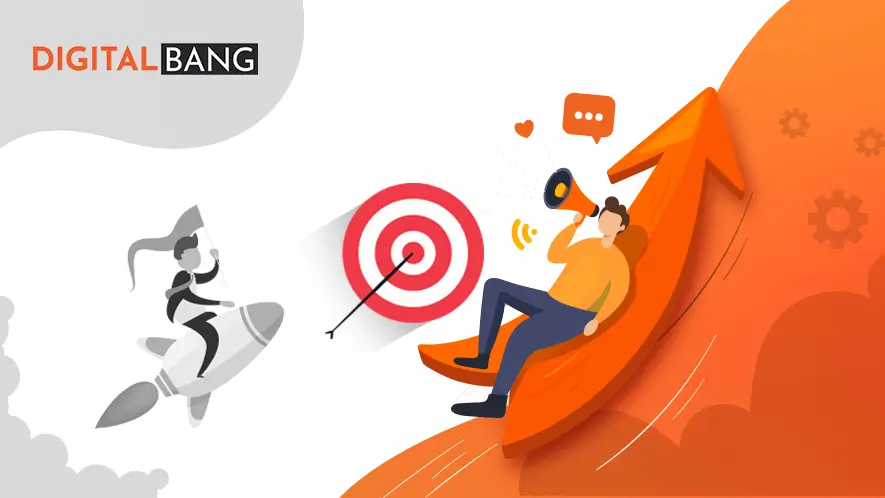 Otherwise, the leading lines could be implied without actual visible lines drawn in the design. For instance, the arrow, the position of the rocket, and other elements in this design are all pointed in a diagonally upward direction. This is a good example of implied leading lines.