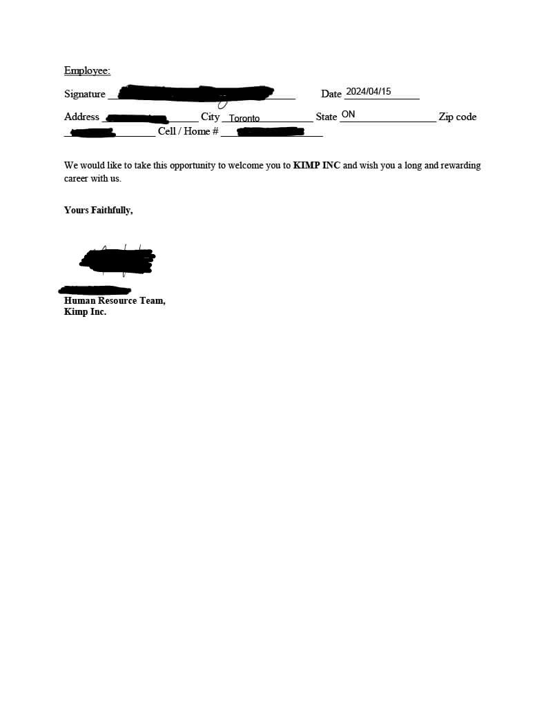 Following an interview via Skype, an offer letter is being issued, similar to the example seen below: