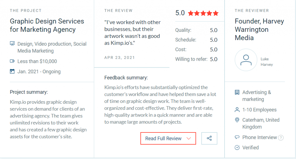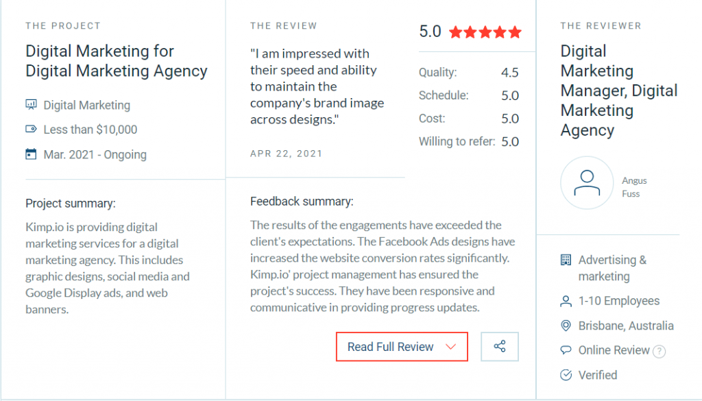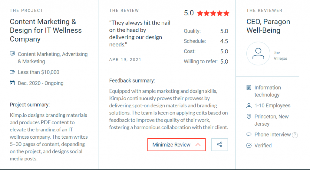 “Kimp is thrilled to be recognized as part of Clutch’s 2022 Top Canadian B2B Companies! The support of our incredible clients and the dedication of our amazing team is the reason behind this recognition. The pandemic has certainly created a number of unique challenges for us all, and we’re grateful that we’ve been able to navigate this together to continue to do what we love, while helping our clients achieve their visions!”