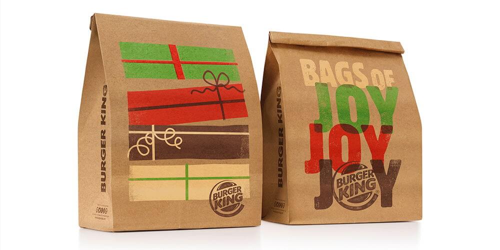 Such minimalistic designs do not have to be boring. You can use cheerful illustrations in bold beautiful colors that look good even on eco-friendly packaging materials. The below takeaway packaging designs from Burger King show how creativity boosts the visual appeal of sustainable packaging materials.