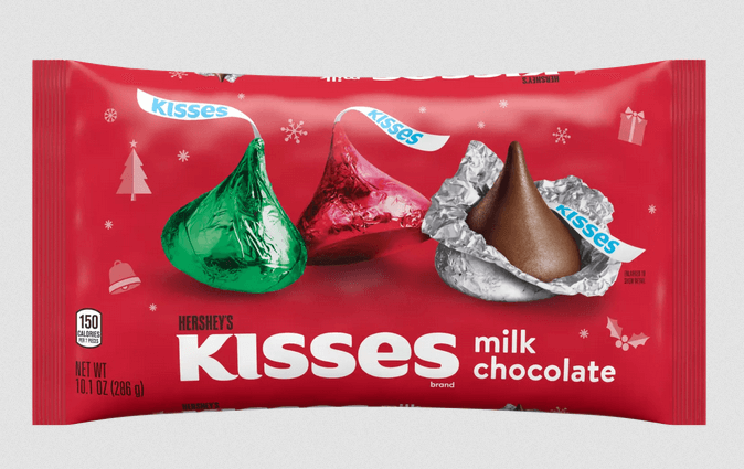 Believe it or not, less can be more in holiday packaging. Because the shopping aisles are filled with products in fancy festive designs and a flurry of colors, a minimalistic design can set your brand apart. This is the idea that Hershey’s went with, in the below holiday packaging.