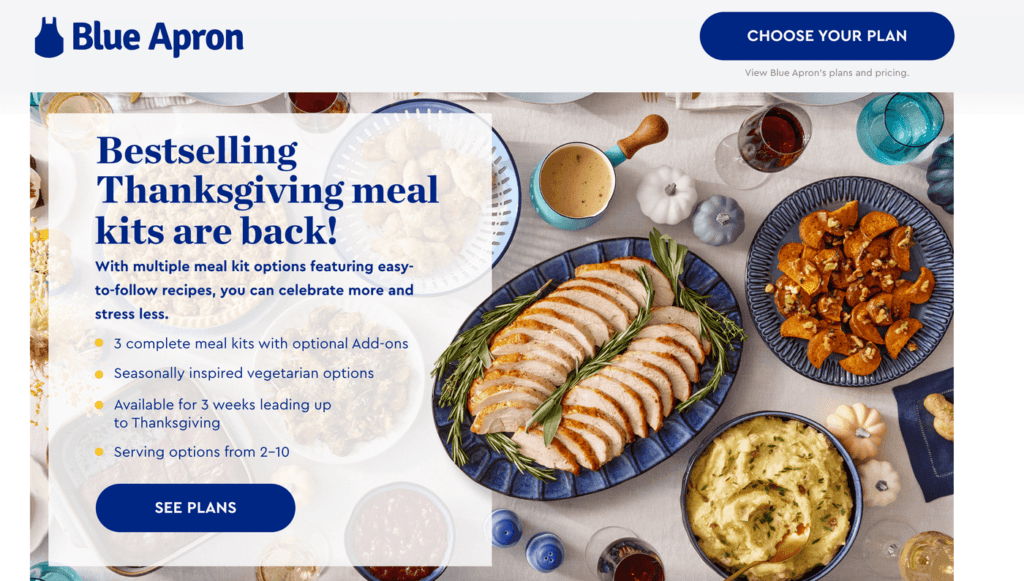 Blue Apron’s Thanksgiving Meal Kits are the perfect examples of this. The idea is simple – the brand creates limited edition meal kits for people who do not have the time to put together an elabnorate Thanksgiving meal or tackle the endless shopping that comes with it. The meal kits save them time and efforts ensuring that they do not have to compromise on traditions.
