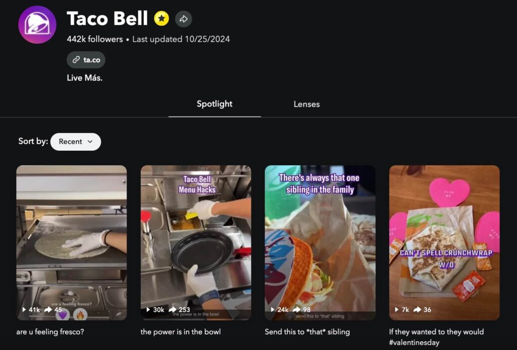For instance, the yellow star badge in the below image helps you confirm that this is indeed the official Snapchat page of Taco Bell and not an imposter.