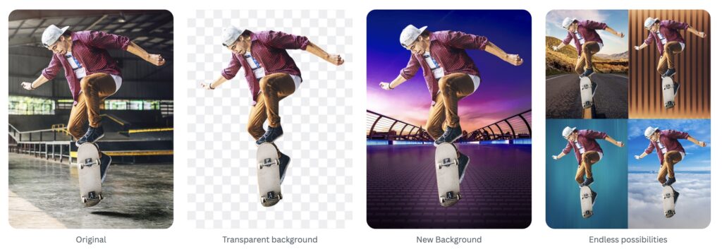 For example, the below image gives a glimpse of some of the background manipulation features available on a popular AI background removal tool, Remove.bg.