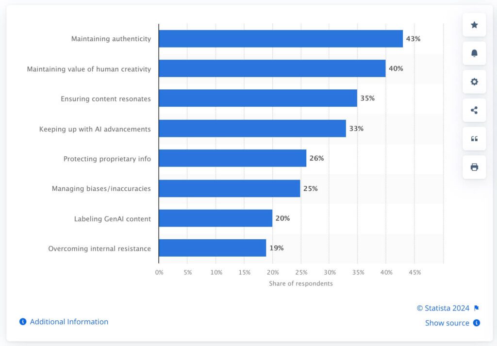 Having discussed these ideas, we would also like to highlight the fact that integrating AI into the workflow is not always easy. In fact, the infographic here shows the biggest challenges that brands reportedly face when adopting AI.
