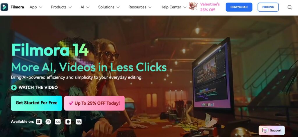 Wondershare Filmora is another name you might hear often when discussing video editing. This beginner-friendly video editing tool is packed with features and has recently been gaining traction for its AI-powered editing options. Moreover, VN Video Editor does not support web-based editing. Hence you’ll have to download the app to use it.