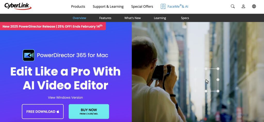 CyberLink PowerDirector is one of the most feature-packed video editing tools for beginners and intermediate users alike. Despite offering professional-grade tools, it maintains a beginner-friendly interface that makes it easy for newcomers to get started.
