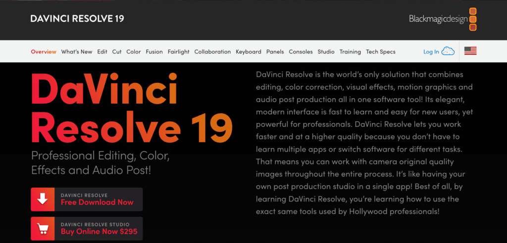 Pricing – free & paid (DaVinci Resolve Studio – $295 one-time purchase)