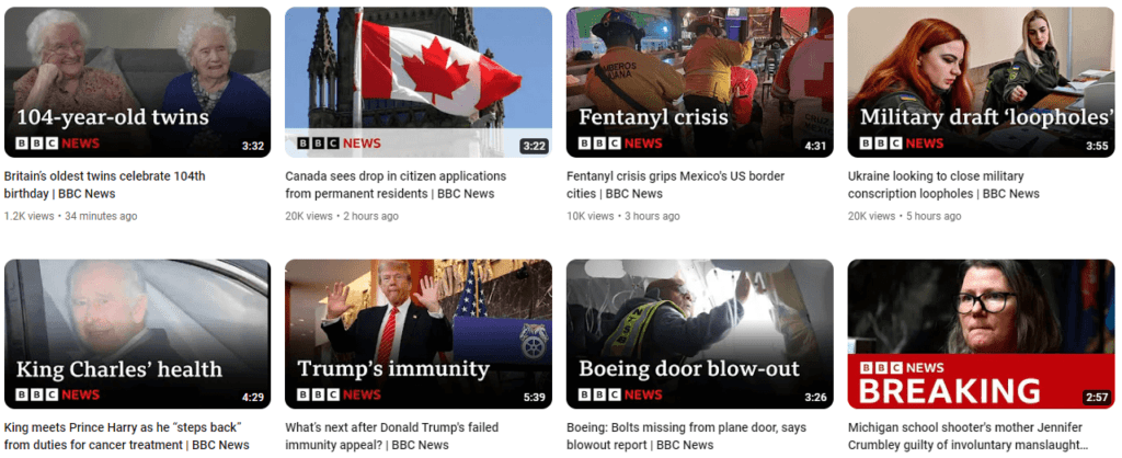 The below image shows the thumbnail fonts used on BBC News’s YouTube channel. Given the modern and professional identity the brand maintains across various channels, the sleek serif fonts suit the channel’s aesthetics well.
