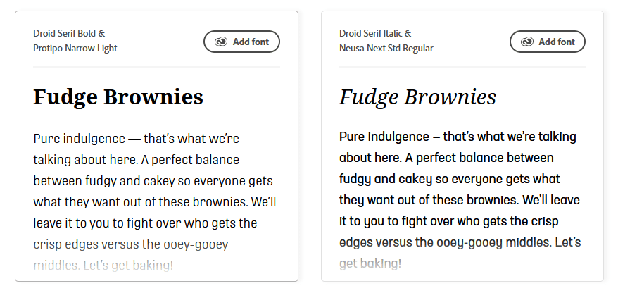 This is a great choice for short lines of text in the intro or even on thumbnails. Adobe recommends pairing this font with slimmer sans-serif fonts like Neusa Next Std Regular or Protipo Narrow Light. These pairings help when you choose to use Droid Serif in the video copy, as titles or subtitles in your text.