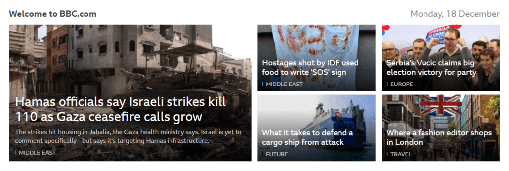 The BBC website is one of the most popular examples when talking about accessibility in UX design. The website is known for its convenient and consistent keyboard shortcuts and screen reader optimization.