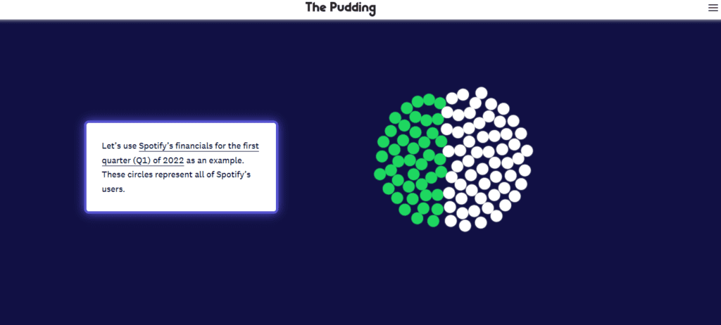 Take The Pudding for example. This digital publication has the most interactive “visual essays”. Each page presents an engaging story that unveils on scrolling down. Simple animations and static frames smoothly appear on the screen making it hard to take your eyes off of the website. The below images show two different frames that appear on scrolling down.