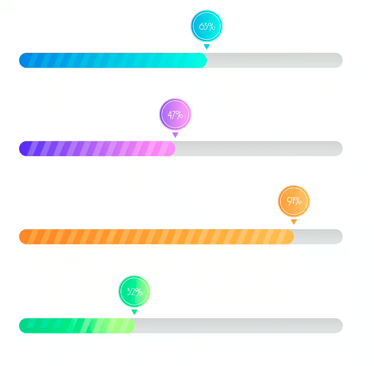 - Horizontal bars with milestone markers and circles indicating the progress in percentage are the most commonly used. Add animations for a more engaging experience.
