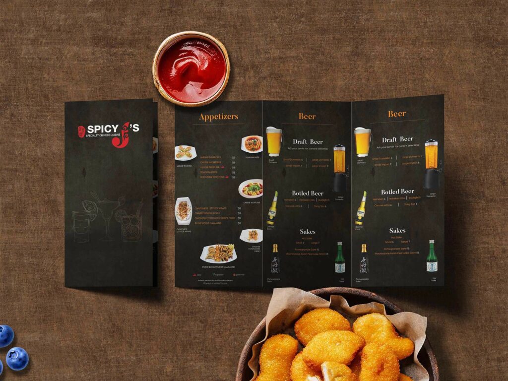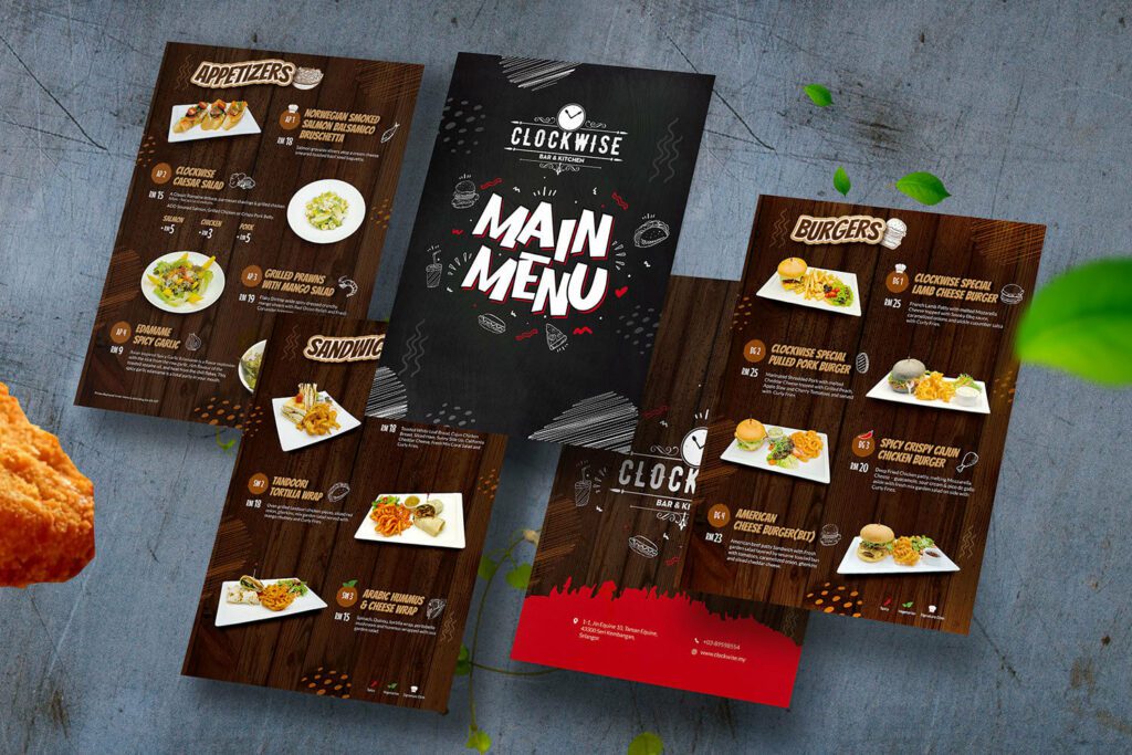 For example, take a look at the restaurant menu here. The arrangement of the image and text sections alternate in each row. So, by the time you are in the third row, your eyes naturally glide in a zigzag pattern to proceed to the next text section. Therefore, the design does not just look well-organized but also makes it easier for users to maneuver through the presented details.