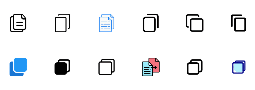 Sometimes, the closure principle is valuable in simplifying a design by eliminating a few lines and curves and yet communicating the message. For instance, can you recall the “copy” icon? Different apps and brands might use their own versions of it but the core structure consists of overlapping rectangles. The rectangle in the background is only partially visible and yet our mind perceives it as a complete structure.