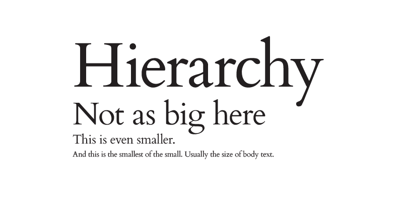 Usually bigger and bolder means that the information is interpreted as being more important. Smaller and thinner text, meanwhile, is assumed as being less important. If you just look at a magazine or a newspaper, it becomes very evident how the headlines appear on the top in big and bold letters while the subheading follows, finally with the copy in the smallest lettering. This is a foundation level approach that can be included in many different types of designs no matter what the design is done for.