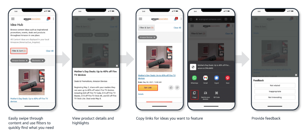 - Amazon regularly shares insights and ideas for Associates to make recommendations like the recommendations shared through Idea Hub.