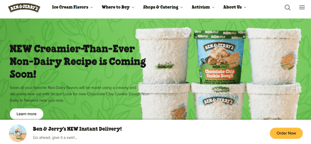 - Since typography is the hero element in the Ben & Jerry’s logo, the brand consistently uses the typeface across marketing and branding designs like packaging and website. This helps you recognize the brand just from the signature typeface.