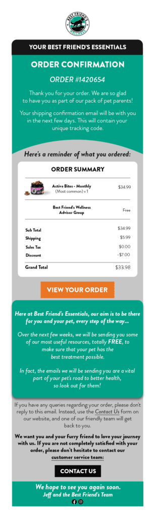 There are two essential types of emails to send after a purchase – one is transactional emails and the other is post-purchase feedback emails. While the former keeps customers informed about the progress of their orders, the latter makes meaningful contact with them when their initial impressions of your brand are still fresh.