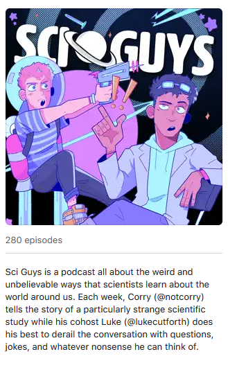 Sci Guys is one of the most popular co-hosted podcasts known for the quirky conversations and the fun discussions on diverse scientific studies.