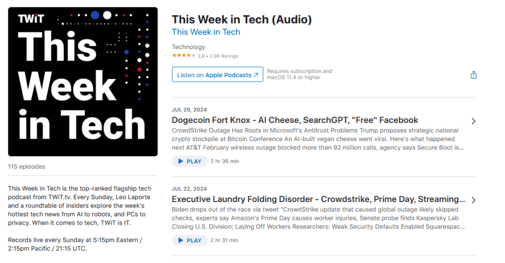 A prominent example of a panel discussion podcast is “This Week In Tech”. The podcast delves into some of the most exciting technological advancements and their pros and cons and the changes they bring with them. Most episodes have a panel of experts from various industries sharing their take on the chosen topic.