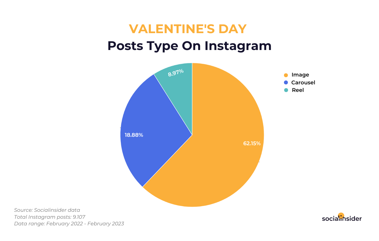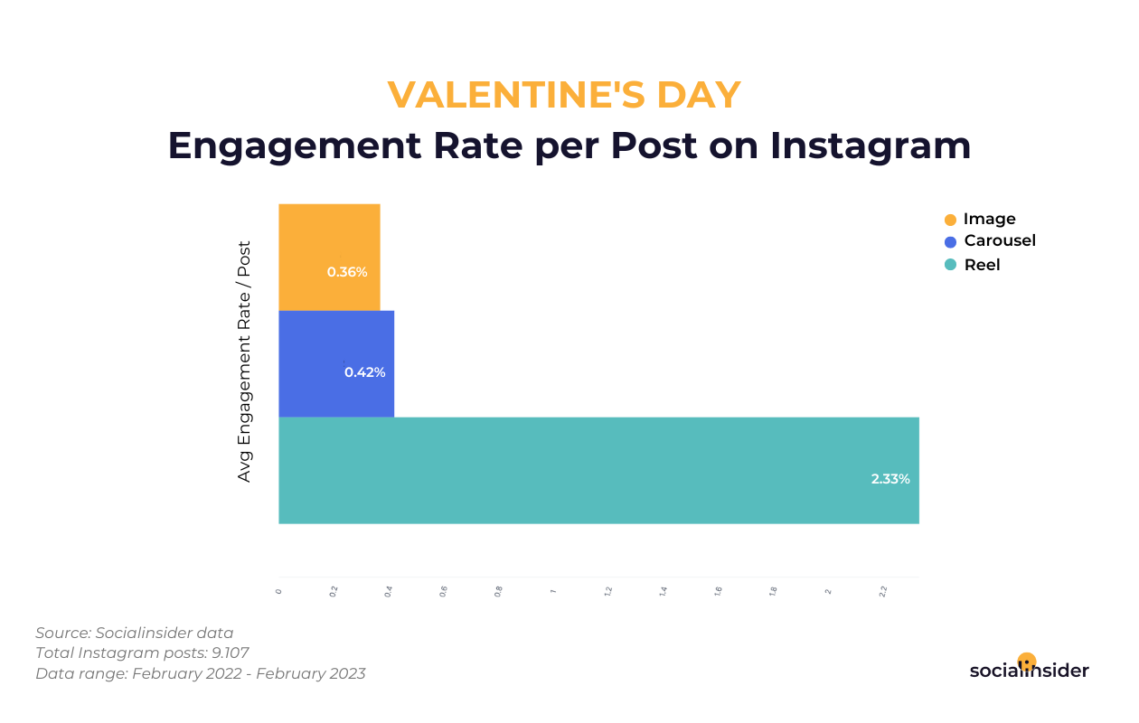 The below images give a glimpse of the engagement rates and post types that work well on Instagram for Valentine’s Day social media campaigns.