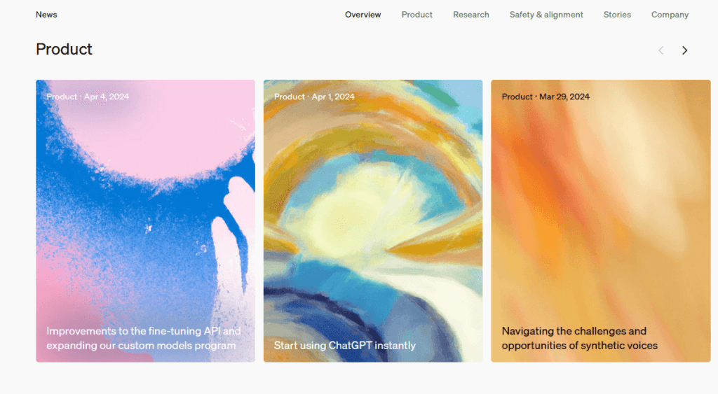 For example, OpenAI is currently at a stage where there are several updates to their products happening almost every week. Therefore, in addition to the informative research-related posts they also regularly share product updates on their blog.