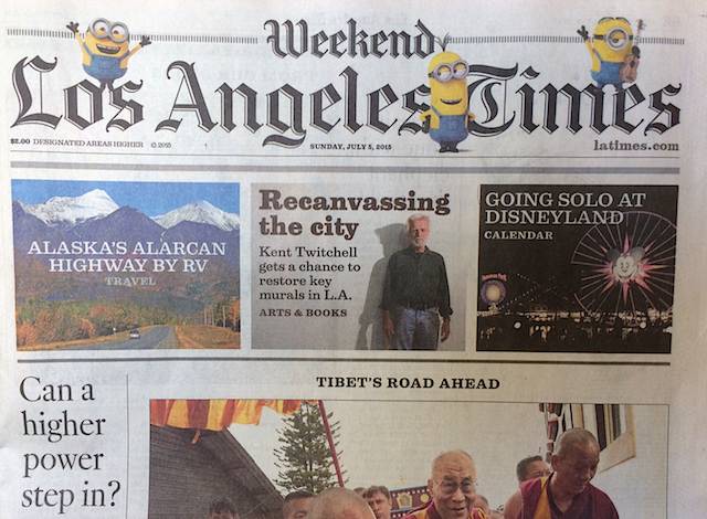 Just because digital ads are dominating the marketing realm, Illumination does not shy away from print marketing for the Minions movies. Here is a picture of when the Minions took over the LA Times masthead.