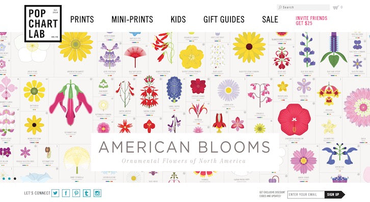 Consider this example. It is a web page that is full of colorful patterns and hardly any text. But the two lines of text that exist on this page have contrast in them. Yes, notice closely how the last line “Ornamental flowers of North America” is in a completely different font. This is to show the nature of the product the brand is pitching and to fully connect with its vibe to the audience.