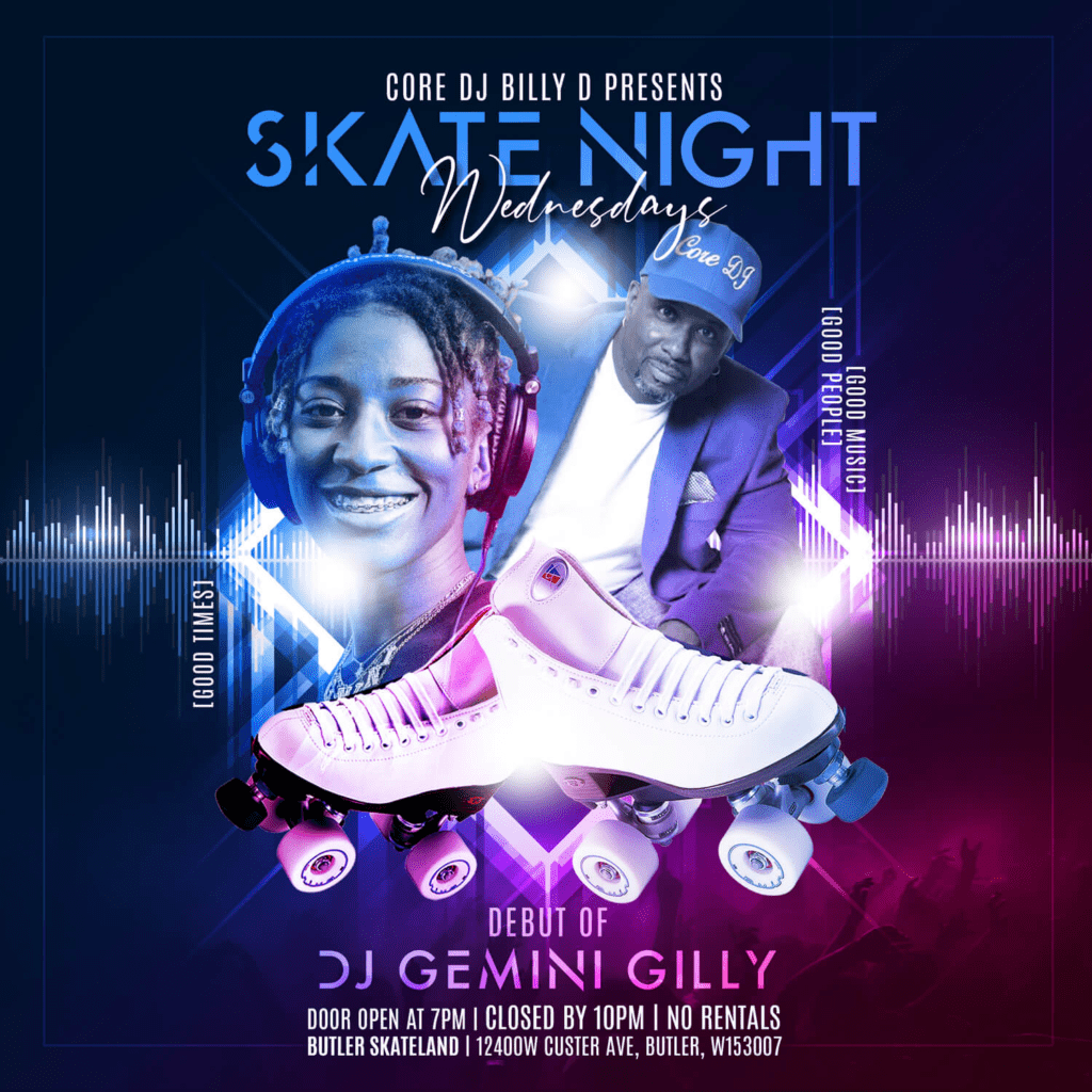 And in the below design the lack of line spacing between “Skate Night” and “Wednesdays” creates an element of interest.