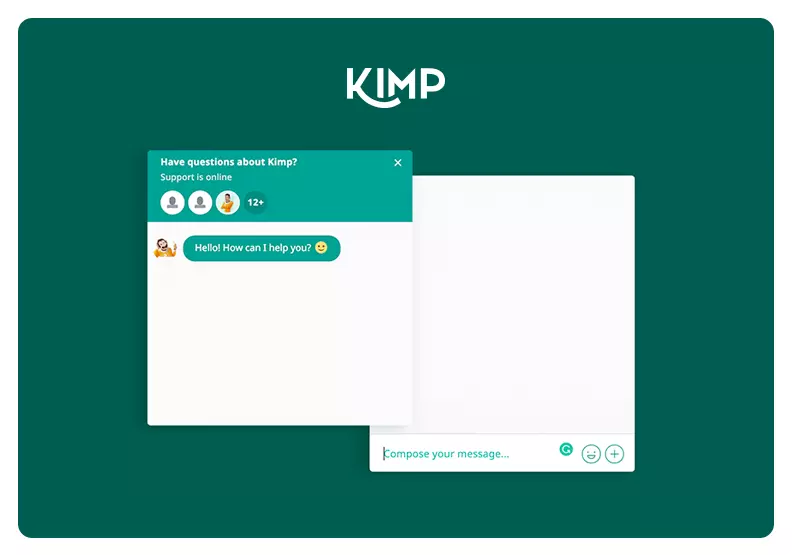 Need help? Kimp’s Customer Support Team is available, via live chat, to answer your questions around the clock.