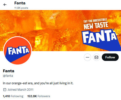 Then comes the typography which is indeed an eye-grabber in the new Fanta logo. The sans-serif font with its retro-esque shadow effect adds to the dynamism of the logo. The brand incorporates creative interpretations of the shadow element to suit the application. For instance, observe the change in the direction of the shadow on the cover image of Fanta’s X page.