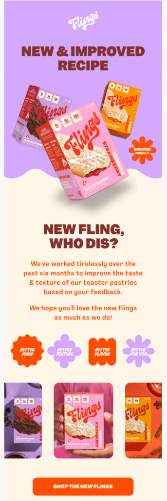 - Ensure that the imagery and overall visual style of your email are in sync with your brand’s signature visual theme. The below email cohesively builds on the brand’s visual theme as seen on the packaging design of the product featured.